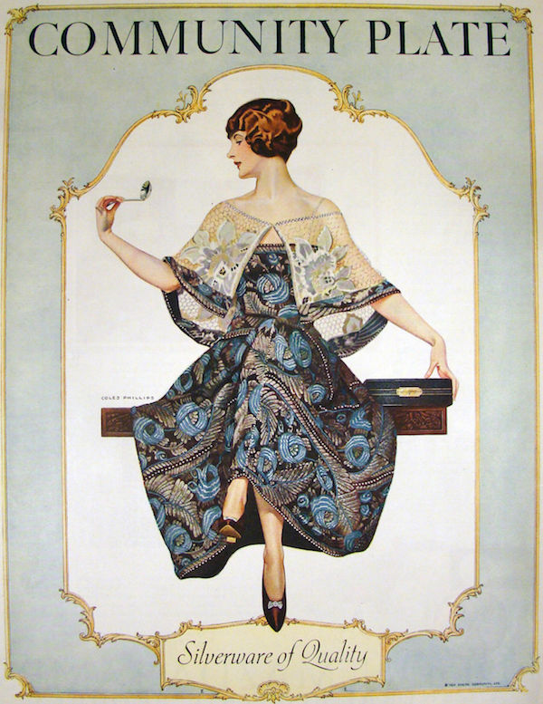An online image search revealed that it came from a line of silver-plated flatware called Rendezvous or Old South, released in 1938 by the Oneida Company, just before World War Two began. “Community Plate” was an affordable silver-plated line of cutlery that had been produced by Oneida for many years. Oneida was known for its lavish full page advertisements in publications such as “Good Housekeeping” and “Better Homes and Gardens” that spoke to the American woman’s dream of an elegant and romantic and traditional colonial lifestyle.